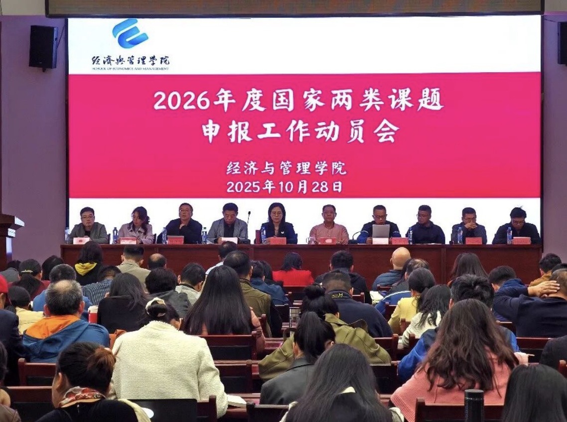 10月28日下午,经济与管理学院在名达楼M6301东报告厅召开2026年度国家基金申报动员大会。院长吉宏、党委书记许婕等全体党政班子成员及学院全体教师参加会议,院长吉宏主持会议。本次会议旨在动员全院教师积极投身国家基金申报,为提升学院科研实力和学科发展夯实基础。