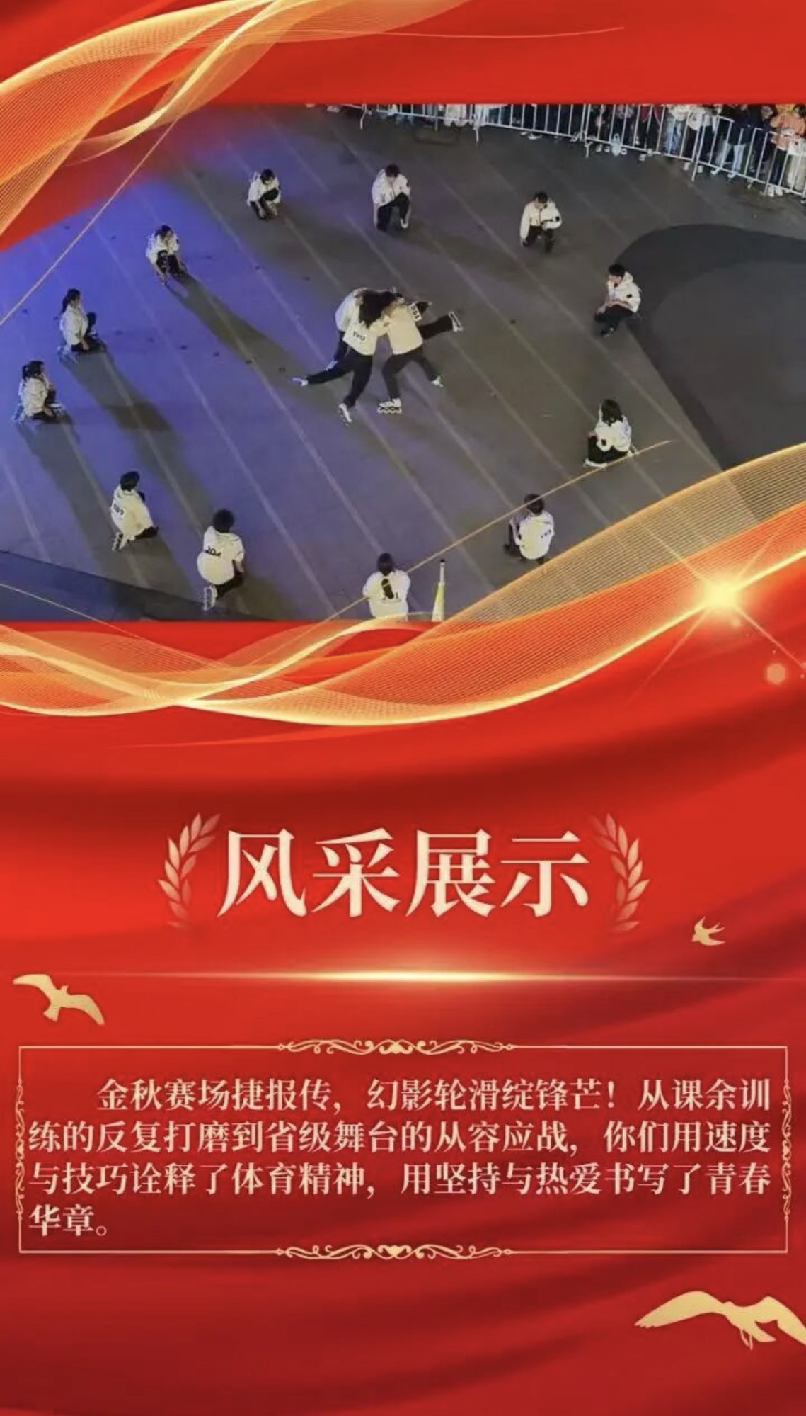 轮滑飞舞,青春飞扬;风驰电掣,未来可期!此次获奖不仅是对队员们辛勤付出的最好回报,更是我院社团建设和校园文化蓬勃发展的生动体现。让我们再次为幻影轮滑社喝彩,期待他们未来再创佳绩,为院争光!