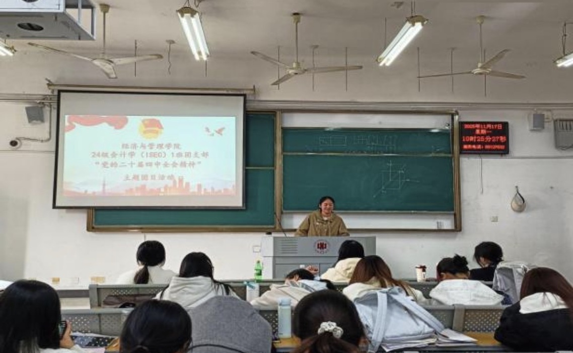 活动中,各团支部积极响应,精心策划,涌现出一批有特色、有实效的典型案例。例如,24级经济学班通过“深入理解全会精神,引领新时代青年成长”主题团日活动,从全会概况、精神要义、实践路径及青年启示等方面展开系统讲解,引导同学们在研讨中深化认识;25级数智会计1班召开“深学全会精神,勇担青春使命”主题团课。从全会召开的时代背景出发,深刻阐释会议的重大现实意义与历史影响,聚焦“中国式现代化”“深化改革”“治理效能”三大关键词;25级金融学1班组织进行“全会精神全景解读”宣讲,以朋辈引领激发学习热情,激励金融学子以专业素养与青春担当投身强国建设。这些活动各具特色,充分展现了经管学子积极向上的学习风貌。