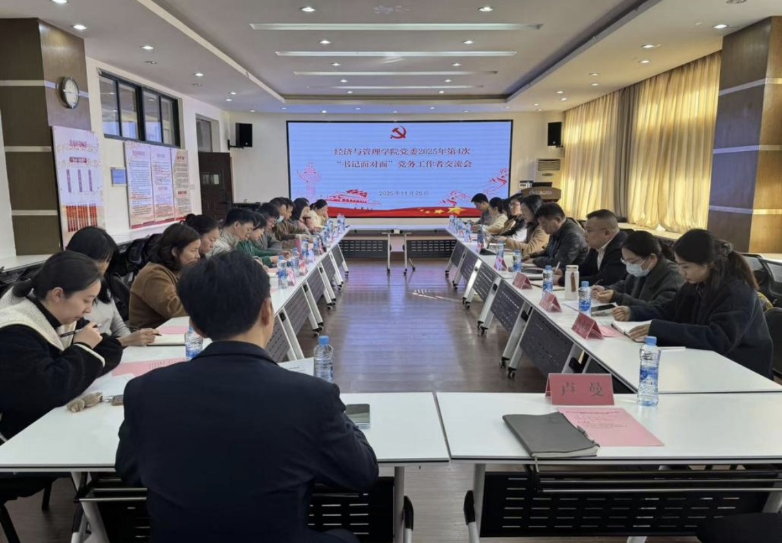 11月25日,经济与管理学院党委召开2025年第4次“书记面对面”党务工作者交流会,重点围绕学院党建品牌创建和部署下月重点党建工作展开交流研讨,学院党委书记许婕、党委副书记江新喜、党委委员欧阳慧出席会议,全体党支部书记、教工支部委员参加会议,会议由党委书记许婕主持。
